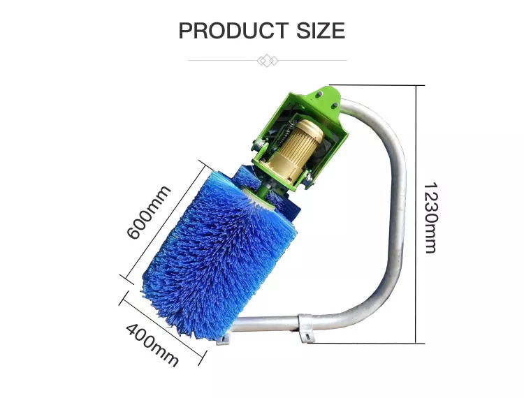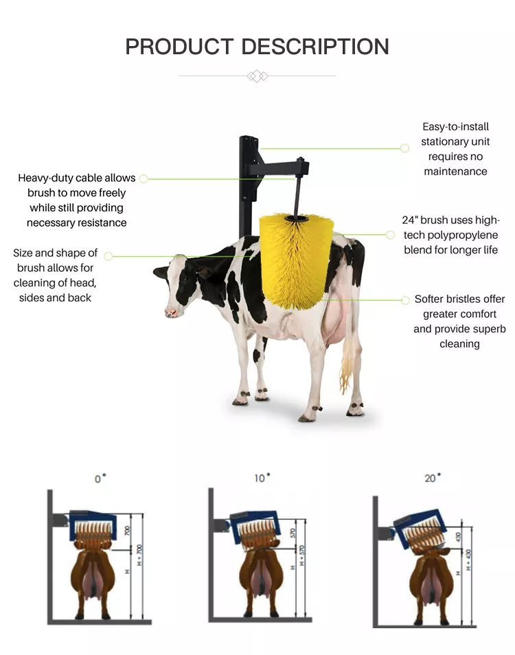 2. Les angles réglables de 0°/10°/20° conviennent au bétail de différentes tailles et permettent le nettoyage de la tête, des côtés et du dos.